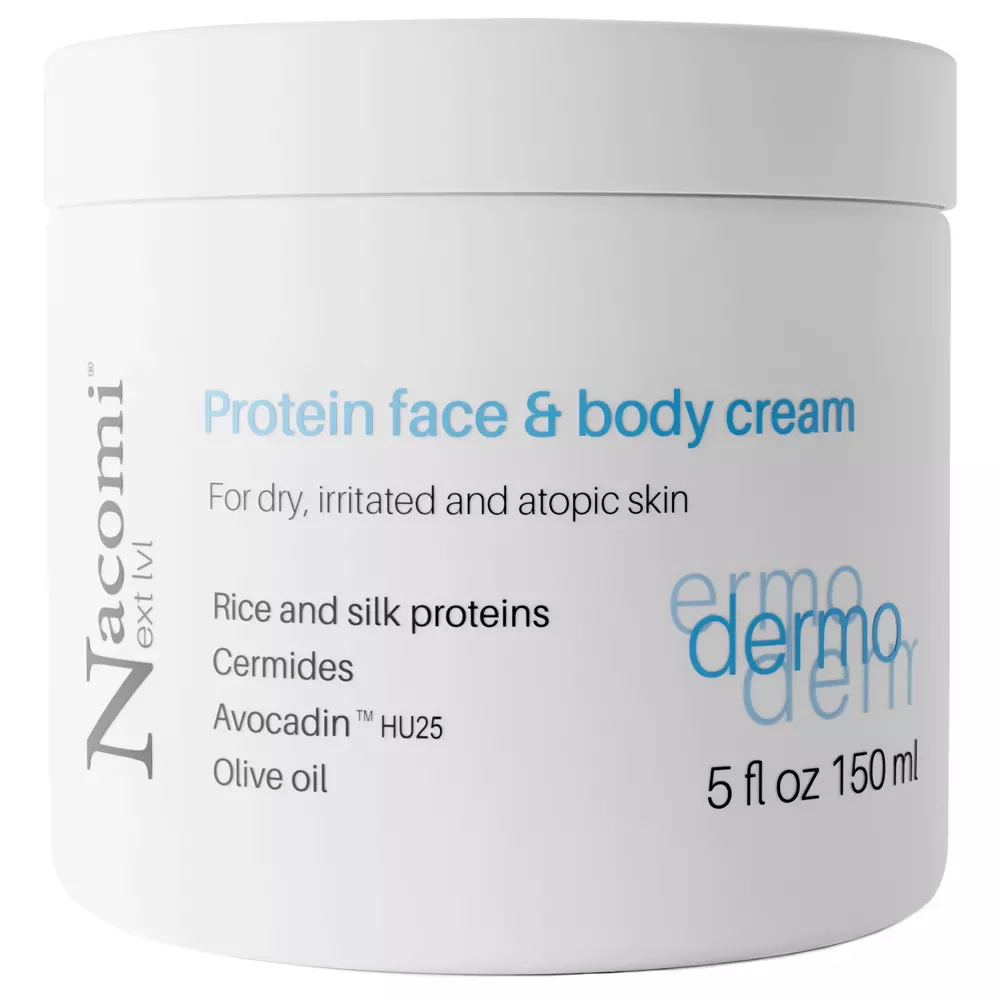 Це справжній порятунок для подразненої та атопічної шкіри. Живильний крем від Nacomi містить повністю натуральні складники, які відновлюють пошкоджений ліпідний бар’єр шкіри та захищають її від втрати вологи. Крім того, формула збагачена заспокійливими та протизапальними компонентами, такими як ніацинамід, алантоїн та вітамін Е, котрі сприяють зменшенню почервонінь, прискорюють загоєння подразнень та пришвидшують регенерацію запальних процесів. Подбай про здоровий вигляд та комфорт своєї шкіри з кремом Protein Face & Body Cream.