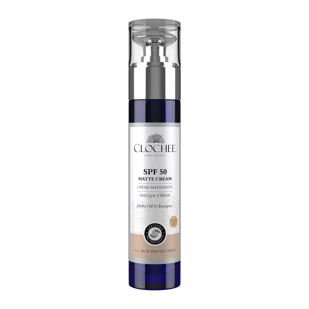 Влітку необхідно використовувати сонцезахисний крем, і насправді кращий крем від зморшок – це крем, що захищає від УФ-випромінювання. Бренд Clochee створив матуючий сонцезахисний крем з високим фактором захисту від сонця SPF50. Крем містить тільки мінеральні сонцезахисні фільтри (оксид цинку і діоксид титану), які безпечні, а також добре підходять для чутливої шкіри. Крім того, крем містить заспокійливі і зволожуючі компоненти, в тому числі олії, пантенол і сквалан, а також екстракт горця пташиного, який має протизапальні властивості та прискорює загоєння ран. Засіб має легкий відтінок бежевого кольору, який вирівнює тон шкіри.