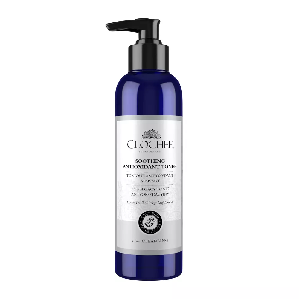 Тонізація – дуже важливий етап як в ранковому, так і в вечірньому догляді. Clochcee пропонує заспокійливий тонік, який відновлює фізіологічний pH шкіри та готує її до наступних етапів догляду за шкірою. Високий вміст соку алое вера в складі, надає заспокійливу і зволожуючу дію, гідролат з квітів дамаської троянди має протизапальну дію, а екстракт зеленого чаю і екстракт листя гінкго білоба регенерують шкіру і мають антисептичні властивості. Тонік підходить для всіх типів шкіри.