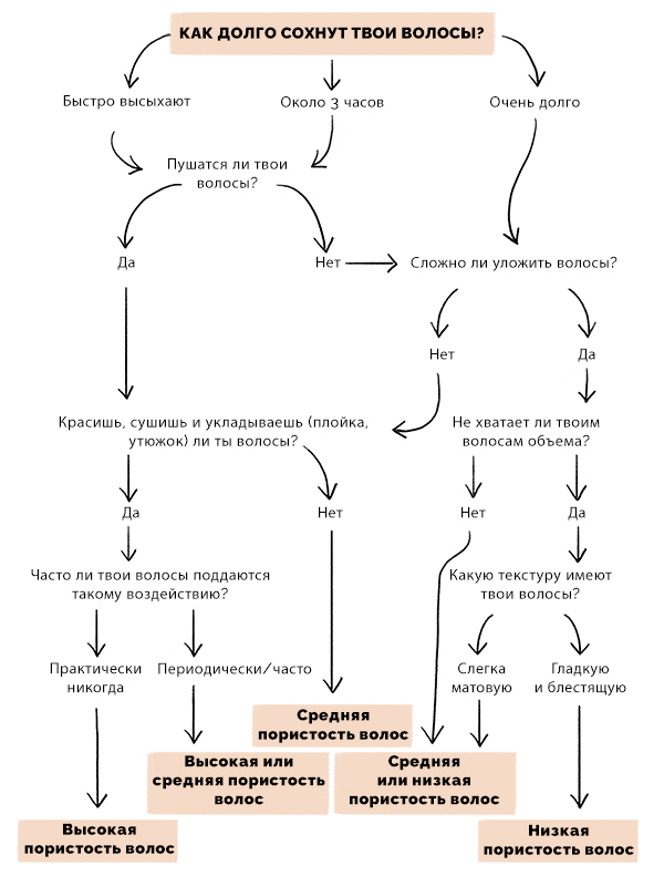 Также следует помнить, что вам не обязательно идеально подходить только под один тип. Может быть, ваши волосы имеют среднюю пористость в сторону высокой или низкой пористости, высокую или низкую пористость в сторону средней пористости.
