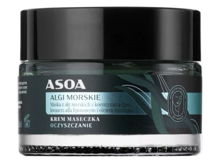 Asoa - Krem-Maseczka Algi Morskie - это маска для лица, которая очищает, выводит токсины, питает и глубоко увлажняет. Морские водоросли обогащают кожу минералами, витаминами и микроэлементами, а цинк ускоряет регенерацию, увлажняет, помогает бороться с высыпаниями и укрепляет кровеносные сосуды. Содержащийся коэнзим Q10 является естественным компонентом нашей кожи, количество которого уменьшается с возрастом. Он защищает кожу от фотостарения и появления морщин. Маска разглаживает кожу, а липоевая кислота (сильный антиоксидант) улучшает ее внешний вид и цвет, а также замедляет процесс старения.