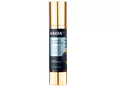 Asoa - Peeling Enzymatyczny Ananas - Żurawina - Энзимный пилинг с ананасом и клюквой - предназначен для чувствительной и нежной кожи. Его формула основана на воде мелиссы лечебной, которая обладает антибактериальными и успокаивающими свойствами. Ферменты ананаса и папайи растворяют ороговевшие клетки эпидермиса, экстракты черники и клюквы, положительно влияют на куперозную кожу, герметизируя кровеносные сосуды, а наличие в составе пантенола оказывает успокаивающее действие. Пилинг эффективно удаляет ороговевшие клетки кожи, делая её гладкой и чистой.