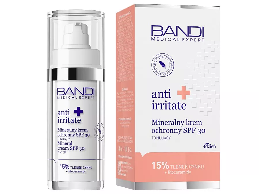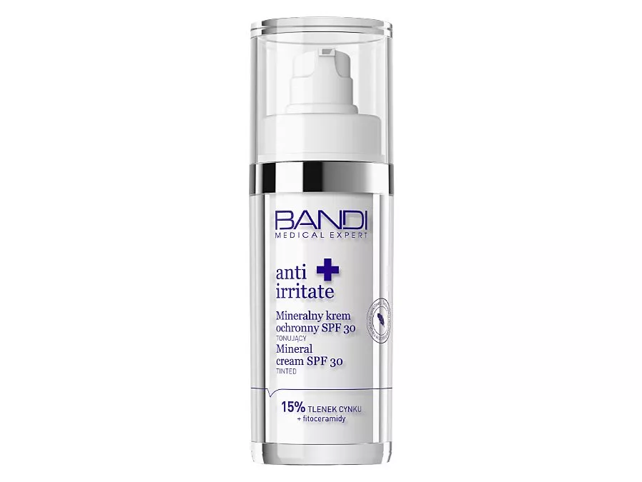 Bandi - Anti Irritate - тонирующий солнцезащитный крем, который содержит физические фильтры, защищающие кожу от УФ-излучения. Средство обогащено пантенолом, который успокаивает кожу, овсяными хлопьями с антиоксидантными и разглаживающими свойствами, маслом сача инчи, которое защищает эпидермис от пересыхания, питает, смягчает и тонизирует, а также церамидами, которые укрепляют защитный барьер кожи. Средство сглаживает неровности кожи, выравнивает цвет и одновременно обеспечивает эффективную защиту от УФ-излучения, также обладает антивозрастными и успокаивающими свойствами. Оттенок крема подстраивается под тон кожи.