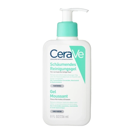 CeraVe - Foaming Cleansing Gel - нежный гипоаллергенный гель без запаха для ежедневного очищения кожи. Содержащиеся церамиды вместе с ниацинамидом увлажняют и укрепляют гидролипидный барьер. Средство подходит для детей и взрослых. Гель можно использовать для очищения кожи лица или всего тела. Он не вызывает комедонов, не оставляет ощущения сухости или стянутости.