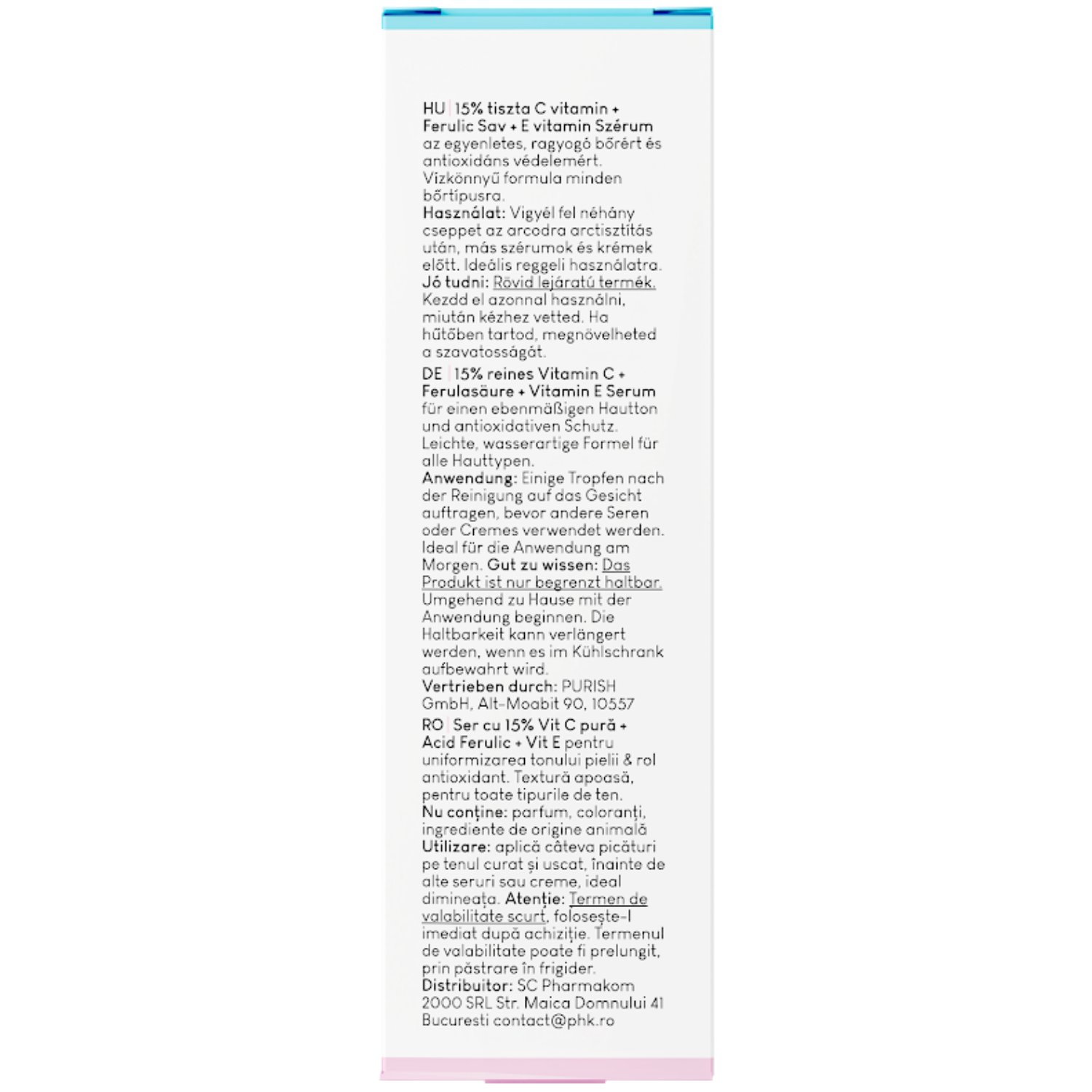 Aqua, (L-)Ascorbic Acid, Dimethyl Isosorbide, Butylene Glycol, PEG/PPG/Polybutylene Glycol-8/5/3 Glycerin, Ferulic Acid, Tocopherol, Phenoxyethanol, Ethylhexylglycerin, Sodium Hydroxide
