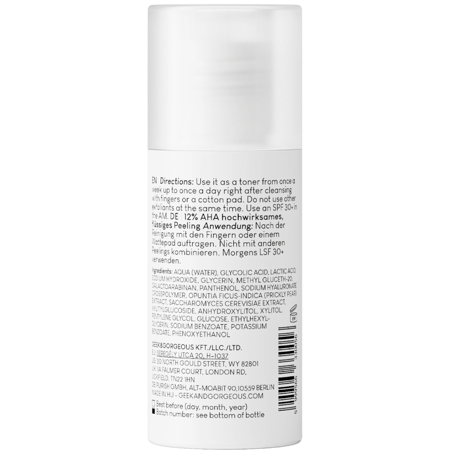 Geek & Gorgeous - Smooth Out - отшелушивающий флюид с AHA кислотами общей концентрацией 12%. Гликолевая кислота отшелушивает кожу, заметно сглаживая ее поверхность, а также тонкие линии и морщинки, замедляя процессы старения и обладает депигментирующим свойством. Молочная кислота увлажняет и смягчает кожу. Галактоарабинан предотвращает потерю воды из эпидермиса и поддерживает действие кислот на кожу. Сахар улучшает увлажнение кожи, а экстракт инжира опунции, дрожжи и пантенол также успокаивают ее и уменьшают раздражение. Имеет pH 3,5-3,9. При регулярном использовании дает эффект мягкой, гладкой и сияющей кожи.