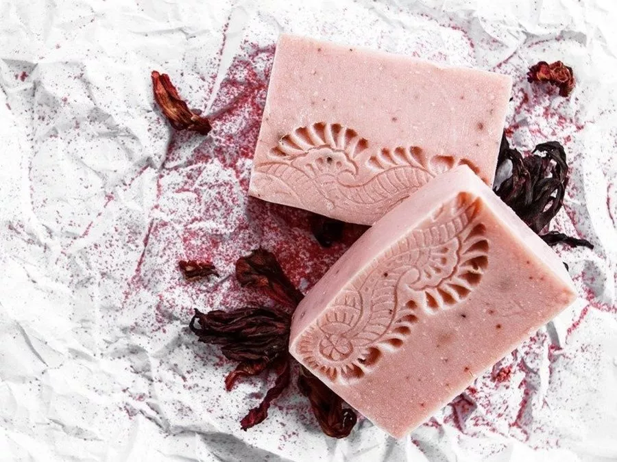 Ministerstwo Dobrego Mydła - Мыло Гибискус - натуральное мыло ручной работы. Содержит экстракт гибискуса, обладающий антиоксидантными свойствами, французскую розовую глину, оказывающую очищающий эффект, омыленное масло ши и омыленное масло какао, которые очищают, питают и смягчают кожу. Мыло тщательно, но бережно очищает кожу. Средство является веганским.
