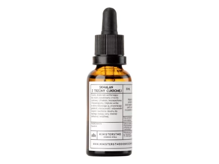 Ministerstwo Dobrego Mydła - Сквалан из сахарного тростника - 100% натуральный сквалан, полученный из сахарного тростника. Сквалан - это стабильная химическая форма сквалена, которая регенерирует кожу, успокаивает раздражения, уменьшает сухость и смягчает потрескавшуюся кожу. Увеличивает проникновение активных компонентов и замедляет процесс старения кожи. Питает кожу, предотвращает потерю воды из эпидермиса и обеспечивает правильный уровень увлажнения, не является комедогенным. Средство рекомендовано для ухода за всеми типами кожи.