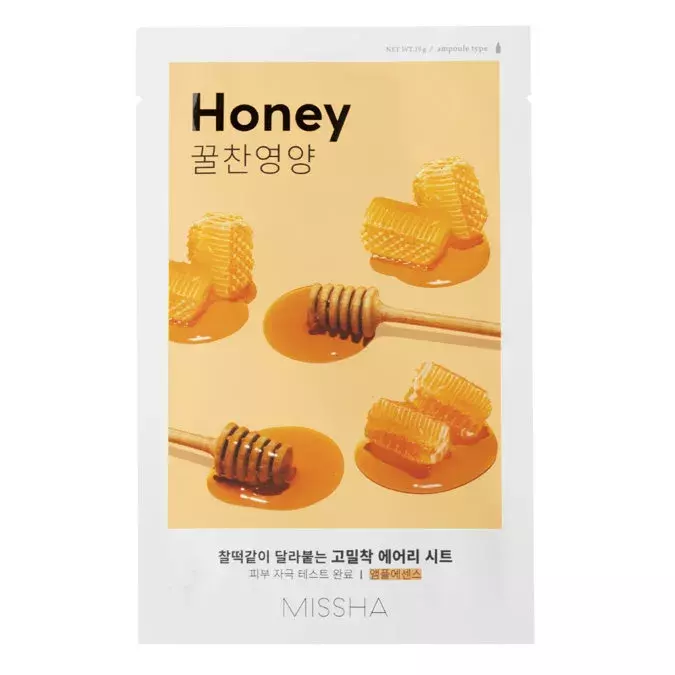 Missha - Airy Fit Sheet Mask - Honey - тканевая маска для ухода за кожей. Особенно эффективна для воспаленной кожи, нуждающейся в регенерации. Она содержит множество противовоспалительных и успокаивающих компонентов: экстракт корня солодки, экстракт имбиря, экстракт листьев зеленого чая, аллантоин и экстракт меда, который также известен своими регенерирующими свойствами. Вся смесь позволяет коже быстрее восстанавливаться и эффективно снимает раздражения. Маска также обеспечивает надлежащее увлажнение кожи.