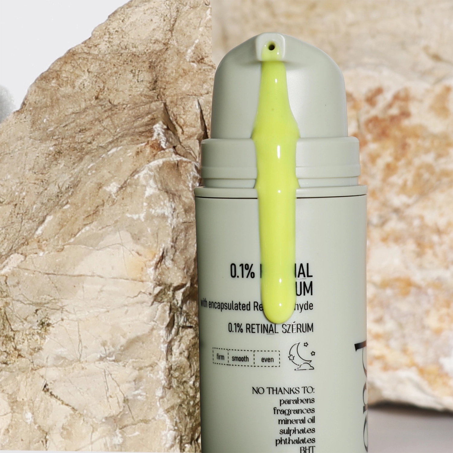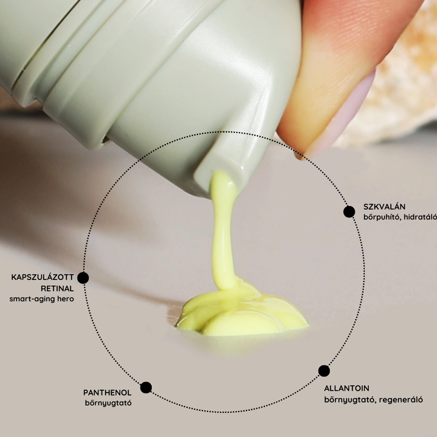 Aqua, Caprylic/Capric Triglyceride, Squalane, Isododecane, Propanediol, Coco-Caprylate/Caprate, Glycerin, Cetearyl Olivate, Biosaccharide Gum-1, Sorbitan Olivate, Panthenol, Hydroxyethyl Acrylate/Sodium Acryloyldimethyl Taurate Copolymer, Retinal, Tocopherol, Cyclodextrin, Allantoin, Polysorbate 20, Phenoxyethanol, Citric Acid, Ethylhexylglycerin