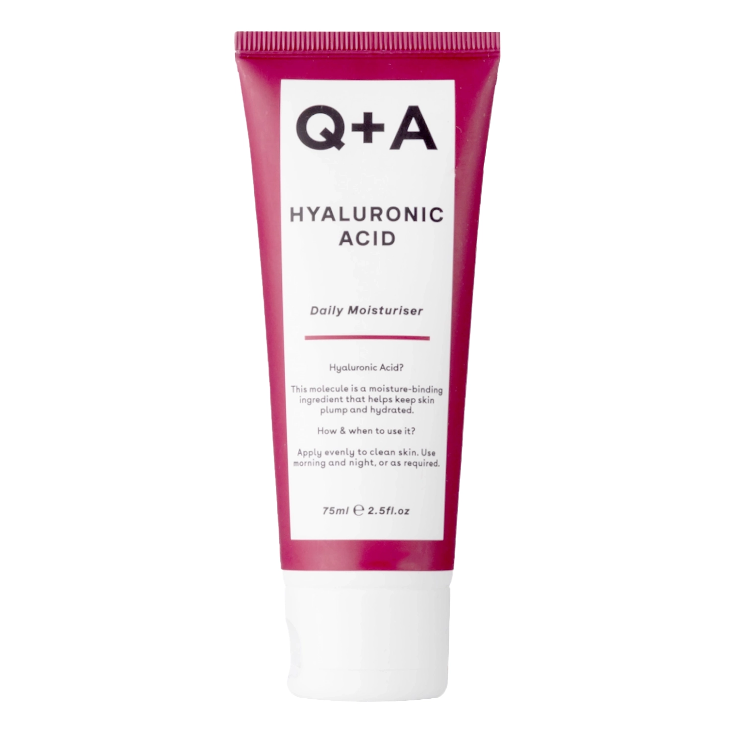 Q+A - Увлажняющий крем для лица с гиалуроновой кислотой - крем, который обеспечивает достаточный уровень увлажнения для всех типов кожи. Он содержит гиалуронат натрия в двух формах, который связывает воду в эпидермисе, обеспечивает необходимое увлажнение и дополнительно разглаживает кожу. Полиглутаминовая кислота обладает разглаживающим и увлажняющим действием. Сок листьев алоэ успокаивает кожу, а масло жожоба регенерирует, тонизирует и укрепляет. Масло виноградных косточек обладает антибактериальными и противоугревыми свойствами, поэтому крем подходит для ухода за проблемной кожей.