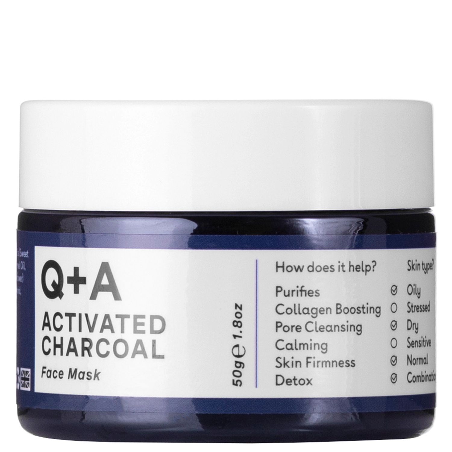 Q+A - Activated Charcoal - Face Mask - очищающая маска с активированным углем эффективно удаляет загрязнения с поверхности кожи, а также помогает сбалансировать уровень секреции кожного сала. Основным ингредиентом является активированный уголь, который в наибольшей степени очищает кожу от токсинов. Бентонит и белая глина способствуют детоксикации, а добавление в состав смеси масел: сладкого миндаля, арганы, подсолнечного и масла ши питают кожу и регенерируют ее.