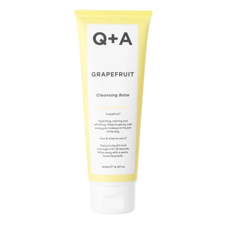 Q+A - Grapefruit - Cleansing Balm - мягкий очищающий бальзам для лица, богатый на антиоксиданты, полученные из масла грейпфрута. Масла какао и сладкого миндаля, которые также входят в состав питают кожу и увлажняют, сквалан защищает от внешних факторов, а касторовое масло обладает противовоспалительными свойствами.