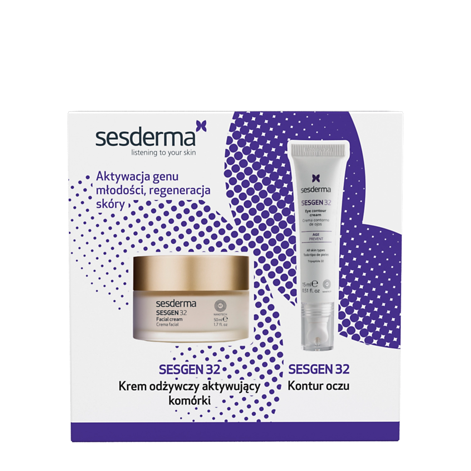 - SESGEN 32 Eye Contour – антивозрастной крем для ухода за нежной кожей вокруг глаз. Благодаря содержанию пептида и аденозина, средство эффективно способствует уменьшению мелких морщин, улучшает упругость и эластичность кожи, а также выравнивает ее тон. Кроме того, масло ши, натрия гиалуронат и молочная кислота обеспечивают оптимальный уровень увлажнения и комфорта, оставляя кожу гладкой и сияющей. Объём – 15 ml.