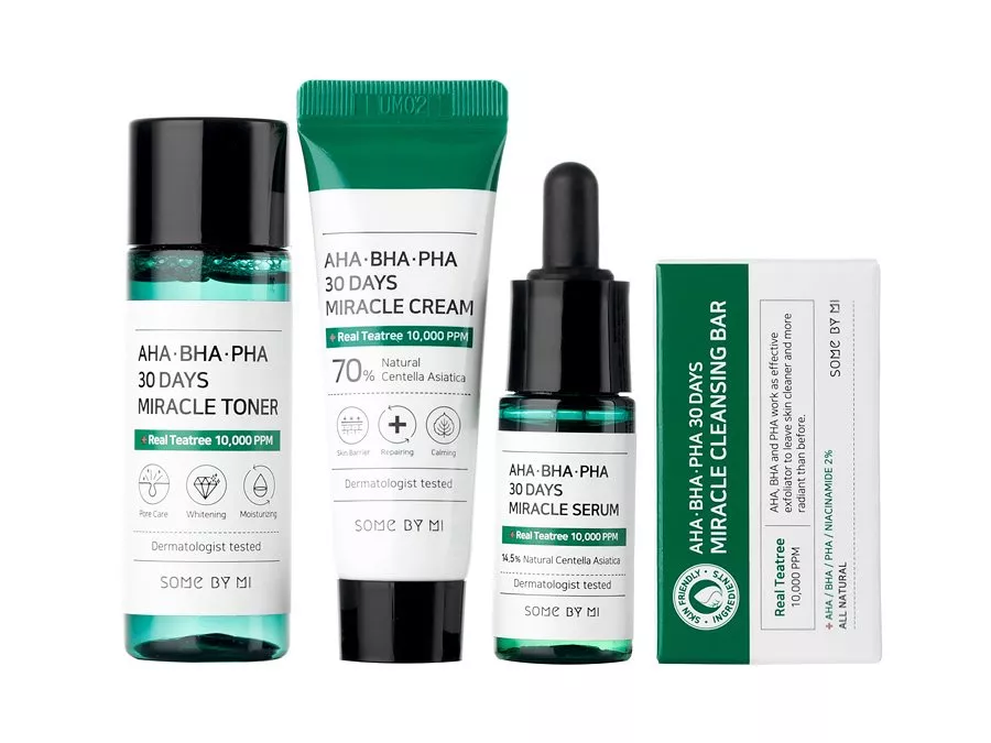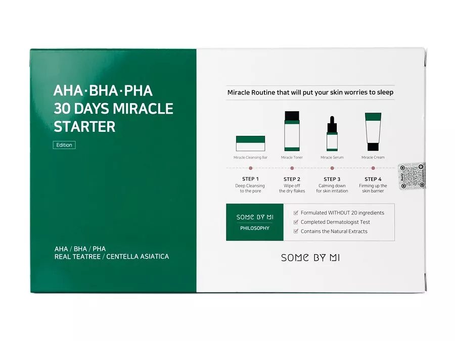 Some By Mi - AHA BHA PHA 30 Days Miracle Starter - набор мини-средств с кислотами AHA, BHA и PHA, предназначенный для жирной, комбинированной и проблемной кожи. В набор входят: