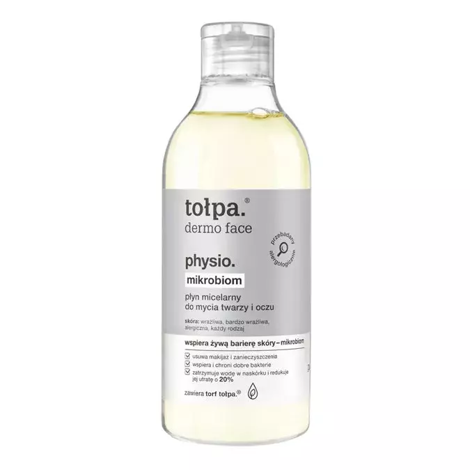 Tołpa - Мицеллярная вода для умывания лица и глаз - мицеллярная жидкость для всех типов кожи. Очищает лицо и глаза от макияжа благодаря мягким очищающим веществам. Вода обогащена ценным экстрактом торфа, также известным как пелоид. Он обладает очищающими и дезинтоксикационными свойствами и освежает кожу. Также содержит увлажняющий гиалуронат натрия.