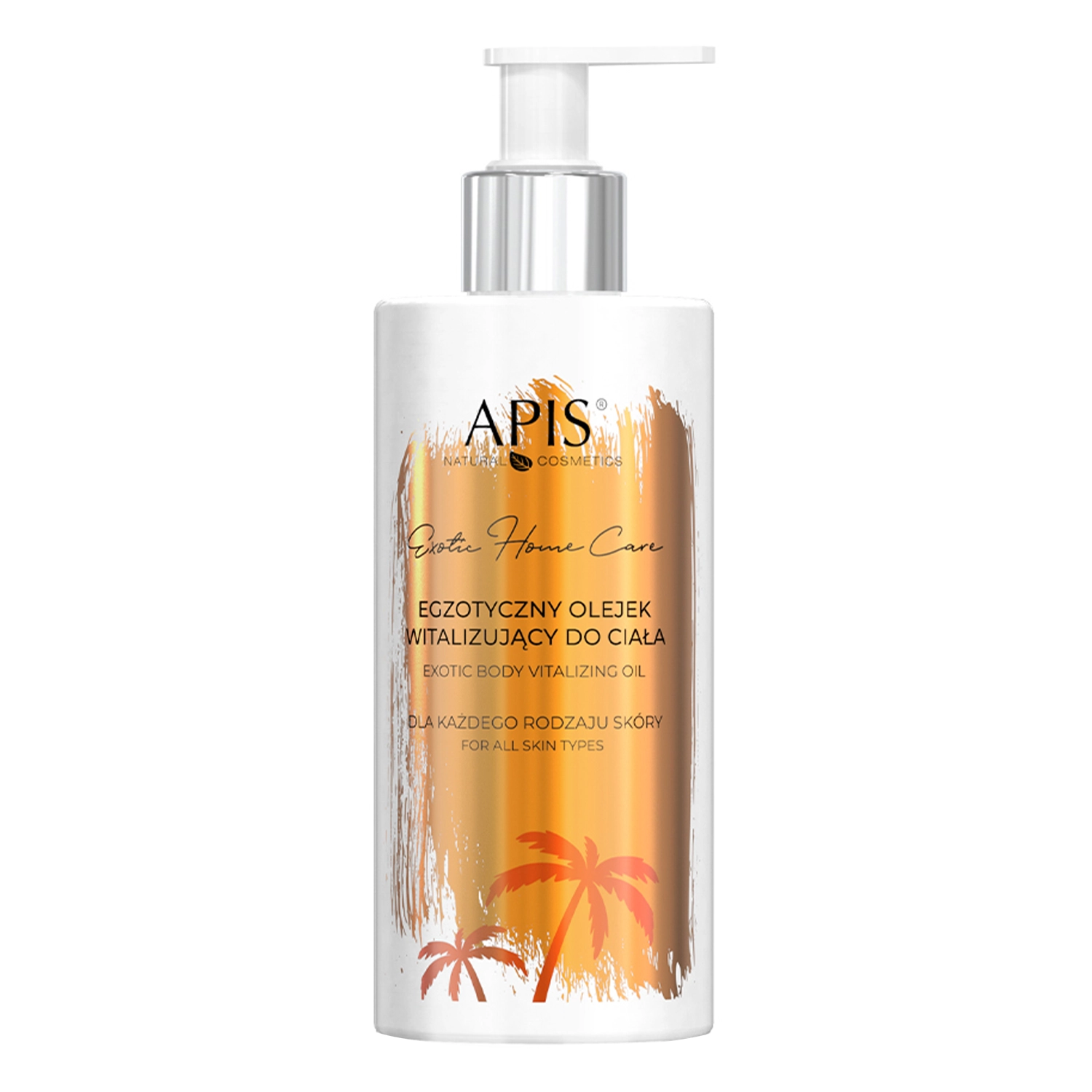 Apis - Екзотична олія для тіла - живильна та розгладжувальна олія для тіла. Забезпечує розслаблення під час нанесення та масажу шкіри. Завдяки вмісту соняшникової олії засіб опосередковано зволожує шкіру та підтримує її природні процеси регенерації. Він також містить екзотичні фруктові екстракти маракуї, манго та граната. Вони освіжають, зволожують і стимулюють регенерацію шкіри. Цінні антиоксидантні властивості також характерні для вітамінів Е і С. Завдяки їм олія сприяє зменшенню кількості вільних радикалів і сповільнює старіння шкіри. Продукт натуральний.