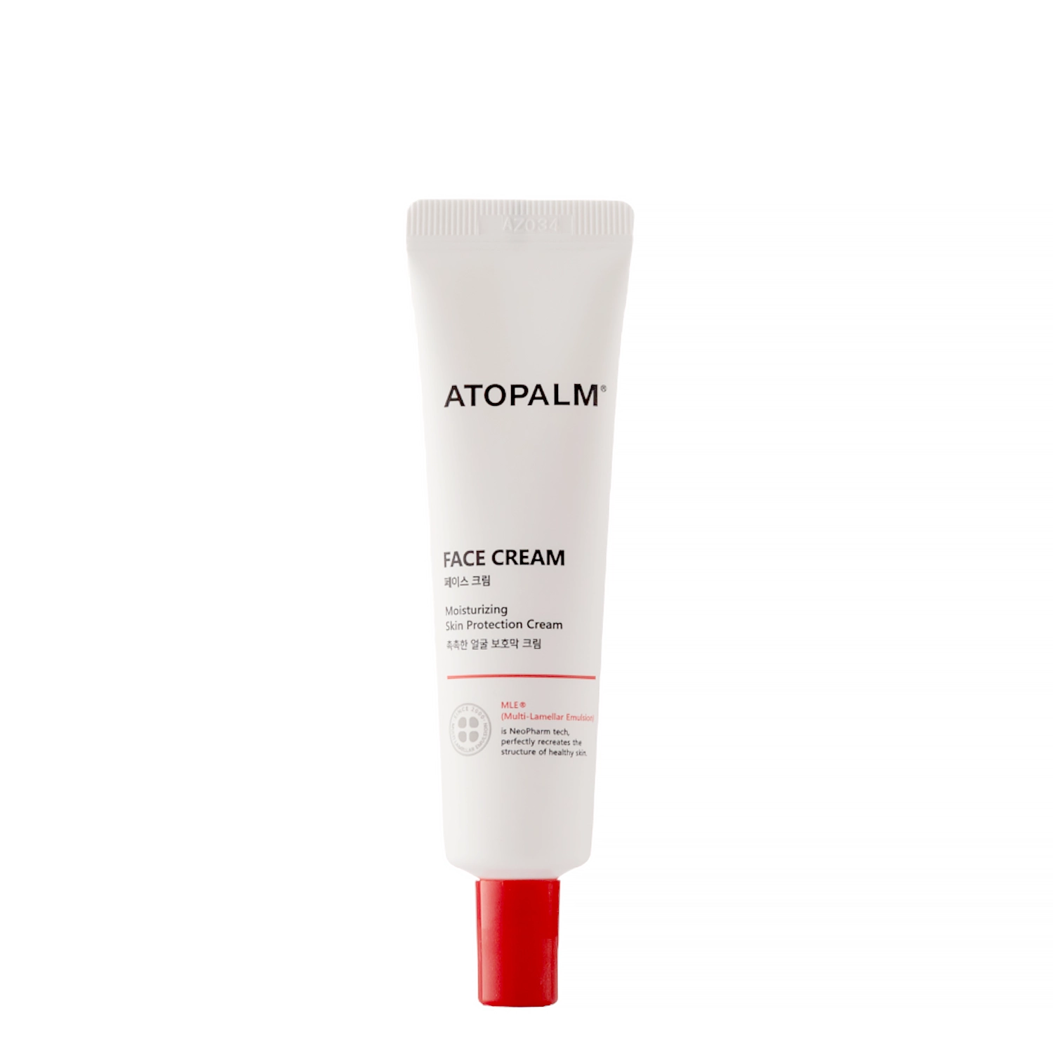 Atopalm - Face Cream - крем з насиченою текстурою, який забезпечує шкіру необхідною дозою вологи та живлення. Він містить емоленти, в тому числі соняшникову олію, яка пом'якшує і підвищує еластичність шкіри. Гіалуронова кислота глибоко зволожує і розгладжує, а бета-глюкан разом з пантенолом заспокоює подразнення і підтримує гідроліпідний бар'єр. На додаток, вітамін Е забезпечує антиоксидантну дію та запобігає передчасному старінню шкіри.