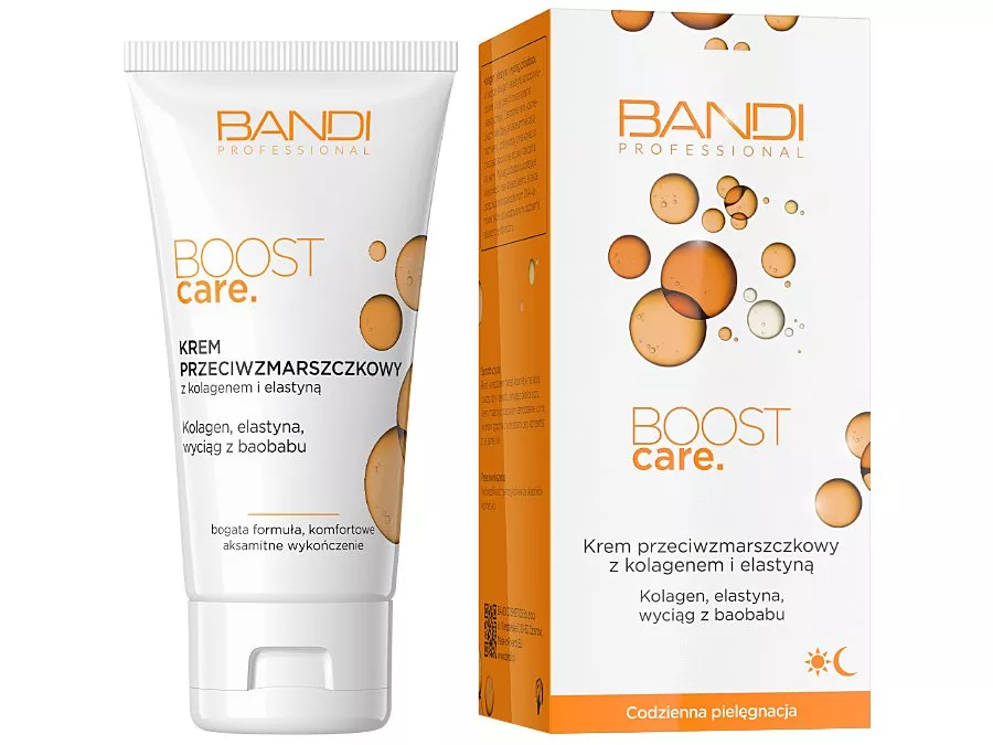 Bandi - Professional - Boost Care - антивіковий крем, який містить олію ши, що захищає епідерміс від пересихання, живить і пом'якшує його, гіалуронову кислоту і олію авокадо, що роблять шкіру гладенькою та еластичною. Крім того, в складі екстракт баобаба, який зміцнює захисний бар'єр шкіри і зменшує ознаки фотостаріння, а колаген та еластин покращують зволоження шкіри, володіють розгладжуючою і зміцнюючою дією. Крем робить шкіру м'якою, еластичною і гладенькою.