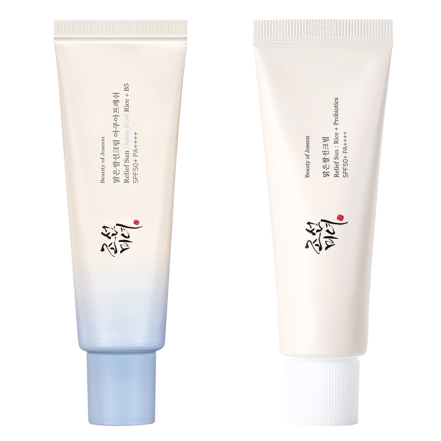 - Beauty of Joseon - Relief Sun Rice Probiotics - SPF50+/PA++++ – крем для догляду за обличчям, який забезпечує захист шкіри від впливу UVA та UVB променів завдяки хімічним фільтрам. Склад засобу збагачено екстрактом рису, який має антиоксидантну дію та допомагає нейтралізувати вплив вільних радикалів. Формула крему має легку текстуру, не липне і не залишає білих слідів. Крем швидко поглинається, має приємний аромат і залишає сатиновий фініш з ефектом «glass skin». Продукт є веганським та містить компоненти натурального походження. Об'єм: 50ml.