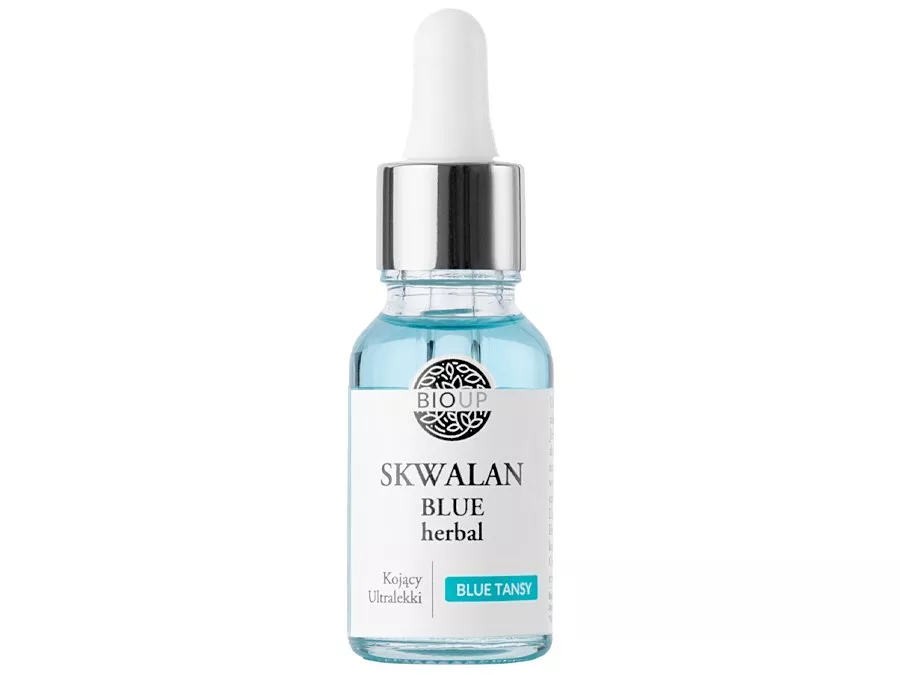 Bioup - Skwalan Blue Tansy - олія призначена для догляду за проблемною шкірою та шкірою з акне. Характерний колір і трав'яний аромат додає ефірна олія марокканської піжми Blue Tansy, яка нейтралізує вільні радикали, надає сильну протизапальну і заспокійливу дію. В якості основи використовувалися два типи сквалану: дуже легкий полусквалан і сквалан з цукрової тростини. В результаті олія швидко вбирається, а діюча речовина проникає глибше.