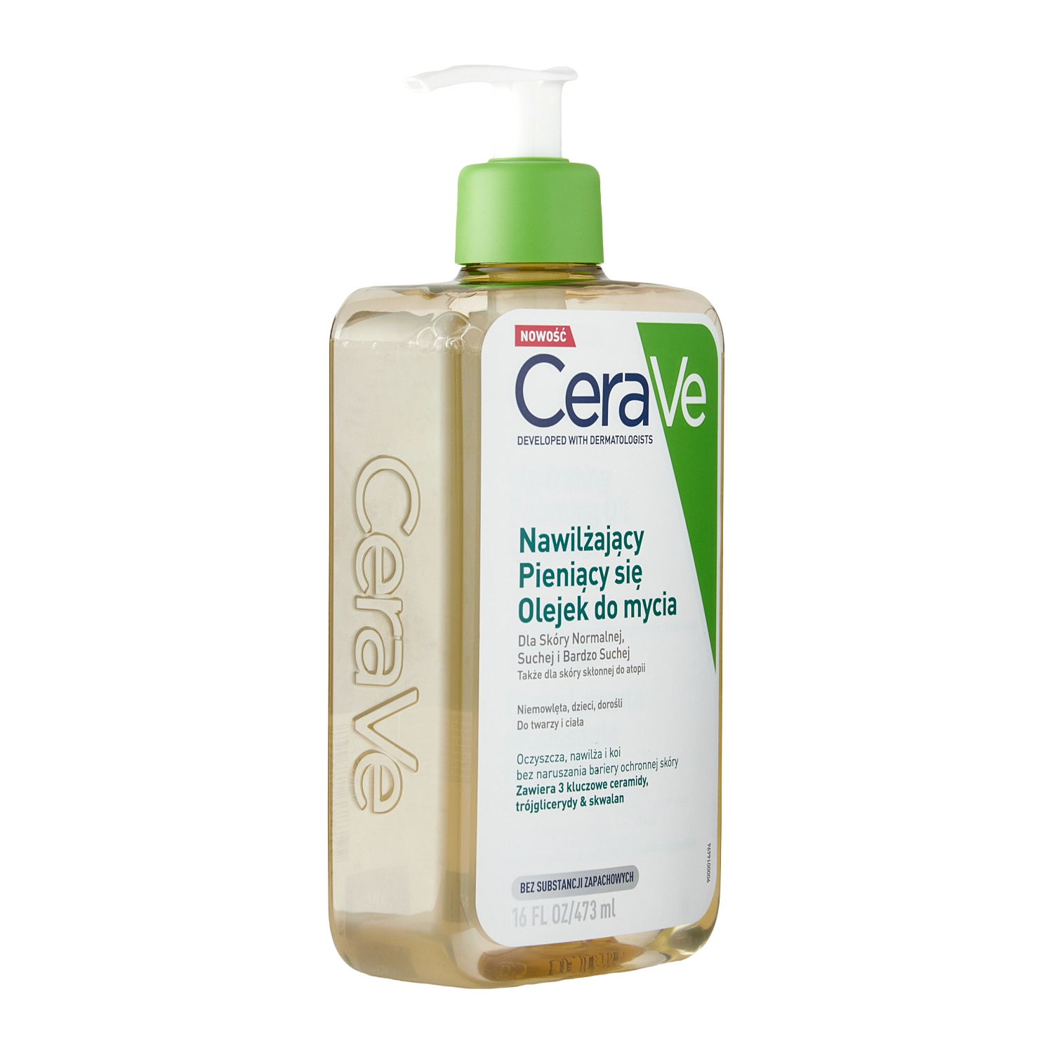 CeraVe - Hydrating Foaming Oil Cleanser - Зволожувальна олія для очищення обличчя і тіла - очищувальна олія на основі м'яких поверхнево-активних речовин, які видаляють забруднення зі шкіри, не викликаючи подразнення. Її склад збагачений скваланом для відновлення ліпідного бар'єра, 3 церамідами для покращення регенерації, живлення шкіри та зміцнення її захисного бар'єра, а також холестеролом для пом'якшення та утримання вологи в епідермісі. Засіб не містить ароматизаторів і добре піниться, тому не залишає жирної плівки на шкірі після змивання. Підходить для інтимних зон, а також для дітей та немовлят.