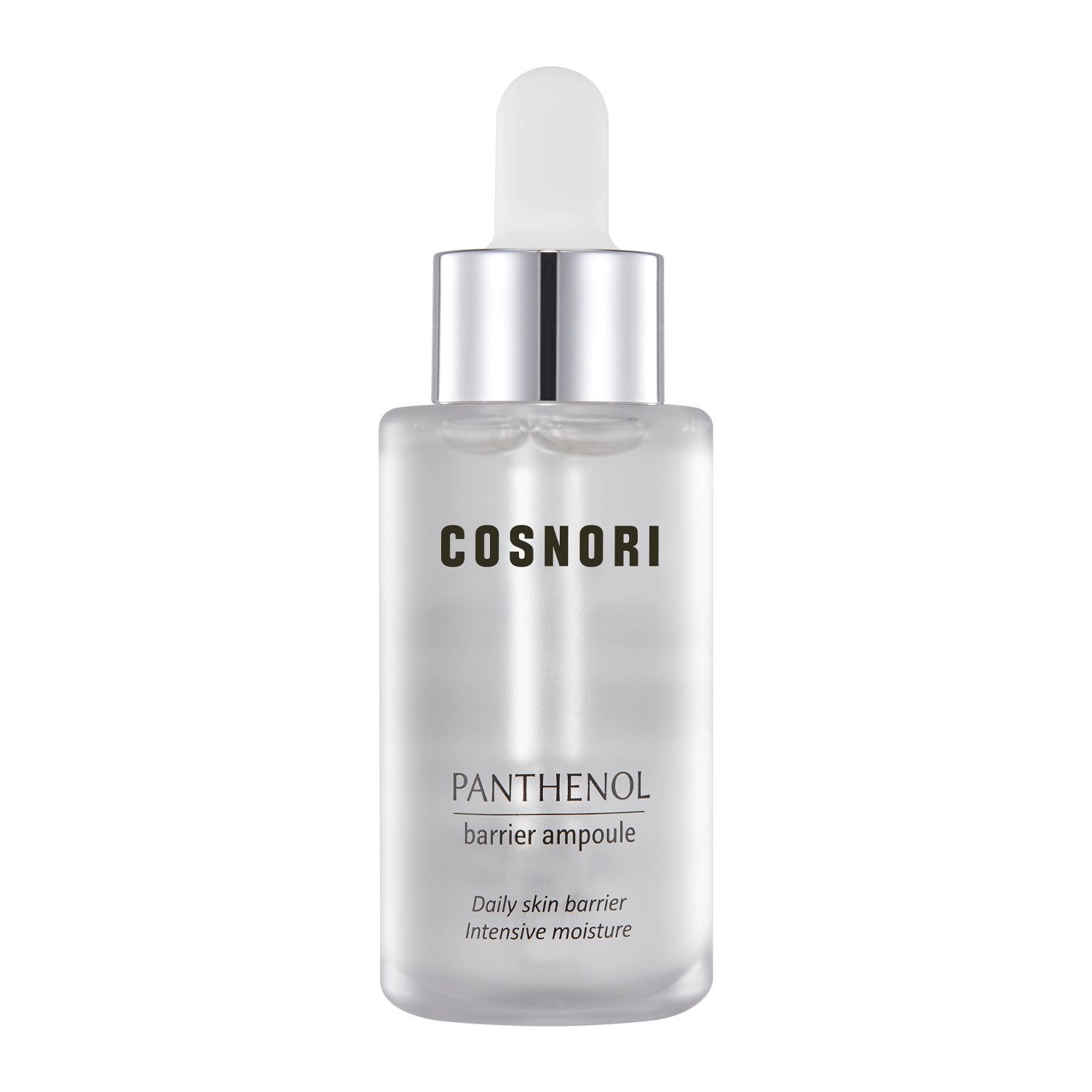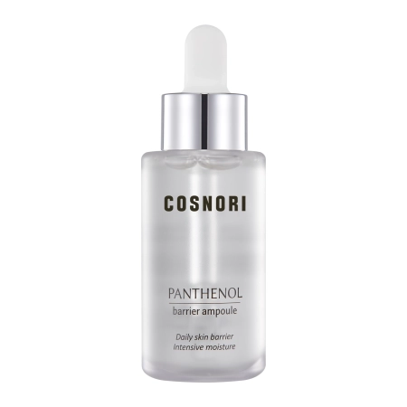 Cosnori - Panthenol Barrier Ampoule – ампула для щоденного догляду за шкірою обличчя. Містить заспокійливий пантенол, який знімає подразнення, зменшує запалення та підтримує регенерацію шкіри. Ніацинамід покращує пружність і вирівнює тон шкіри, а екстракт сливи какаду з потужною антиоксидантною дією ефективно захищає її від вільних радикалів. Аденозин допомагає зменшити дрібні мімічні зморшки й вирівнює тон шкіри. Композицію доповнює бета-глюкан, який дбає про оптимальне зволоження шкіри. Косметичний засіб упакований ц зручний флакон з піпеткою для гігієнічного та точного дозування.