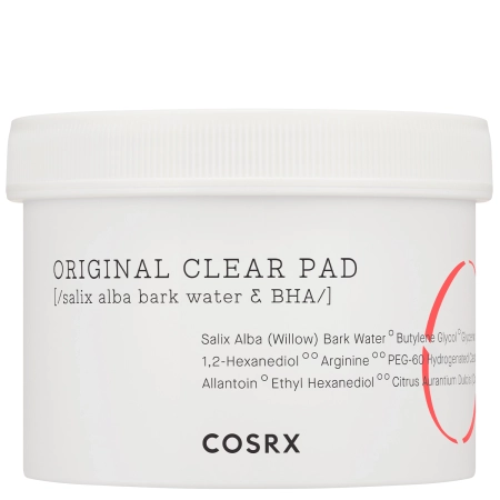 Cosrx - Очищувальні пілінг-диски для проблемної шкіри - відлущувальні та очищувальні диски для обличчя, змочені рідиною з саліциловою кислотою. Вони очищають шкіру, регулюють роботу сальних залоз, звужують пори і допомагають заспокоїти запалення. Диски складаються з двох частин: опуклої, яка ніжно відлущує відмерлі клітини шкіри, і гладкої, яка зволожує та розгладжує шкіру. Призначені для догляду за проблемною шкірою.