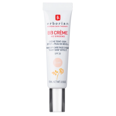 Erborian - BB Creme - Clair R22 – легкий BB-крем для обличчя із захистом від сонця на рівні SPF 20. Завдяки мінеральним сонцезахисним фільтрам не лише делікатно вирівнює тон шкіри, а й забезпечує її захист від шкідливої дії UV-випромінювання. Формула засобу також збагачена бетаїномекстрактом кореня женьшеню та екстрактом кореня солодки. Така комбінація компонентів сприяє зволоженню шкіри, заспокоює подразнення та нейтралізує вільні радикали. BB-крем дозволяє поступово регулювати щільність покриття, щоб досягти бажаного ефекту макіяжу. Його кремова текстура добре зливається зі шкірою та забезпечує натуральний фініш без ефекту маски. Ідеально підходить для щоденного легкого макіяжу.