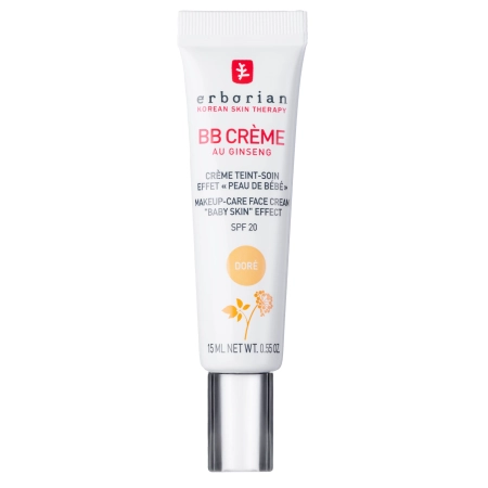 Erborian - BB Creme - Dore R22 – легкий BB-крем для обличчя із захистом від сонця на рівні SPF 20. Завдяки мінеральним сонцезахисним фільтрам не лише делікатно вирівнює тон шкіри, а й забезпечує її захист від шкідливої дії UV-випромінювання. Формула засобу також збагачена бетаїномекстрактом кореня женьшеню та екстрактом кореня солодки. Така комбінація компонентів сприяє зволоженню шкіри, заспокоює подразнення та нейтралізує вільні радикали. BB-крем дозволяє поступово регулювати щільність покриття, щоб досягти бажаного ефекту макіяжу. Його кремова текстура добре зливається зі шкірою та забезпечує натуральний фініш без ефекту маски. Ідеально підходить для щоденного легкого макіяжу.