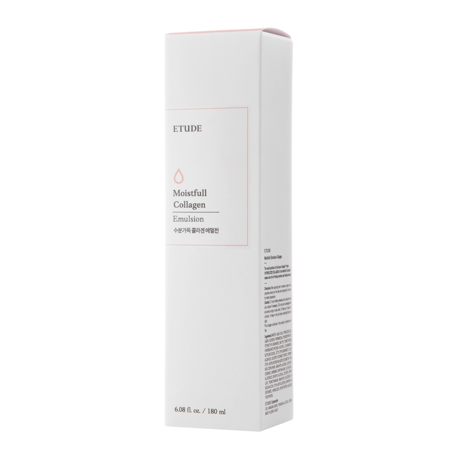 Etude House - Moistfull Collagen Emulsion - легка зволожуюча емульсія містить дрібні частинки води «Супер Колаген» і масло баобаба, які швидко проникають в шкіру для тривалого зволоження і еластичності. Есенція швидко вбирається, має приємну, легку текстуру і ідеально підходить для щоденного догляду за шкірою обличчя та декольте.