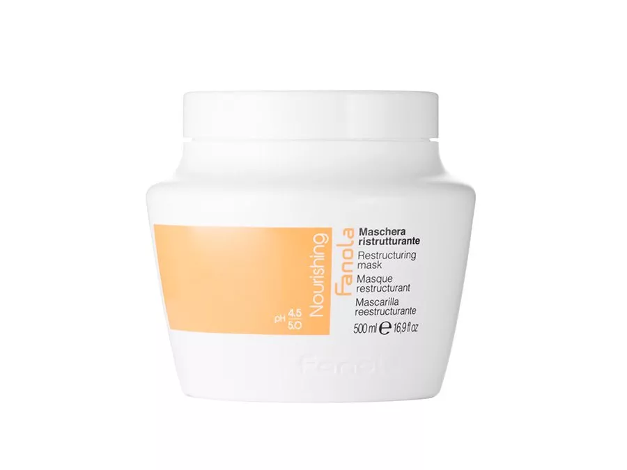Fanola - Nutri Care Restructuring Hair Mask - маска містить гідролізовані протеїни молока, які зволожують і зміцнюють волосся, заповнюють пошкодження і розгладжують його. Крім того, гідролізований казеїн запобігає електризації і сплутуванню волосся, полегшує розчісування і відновлює пошкоджене волосся. Маска не обтяжує волосся і не робить його жирним. Прекрасно зволожує дуже сухе волосся, зміцнює і захищає його.