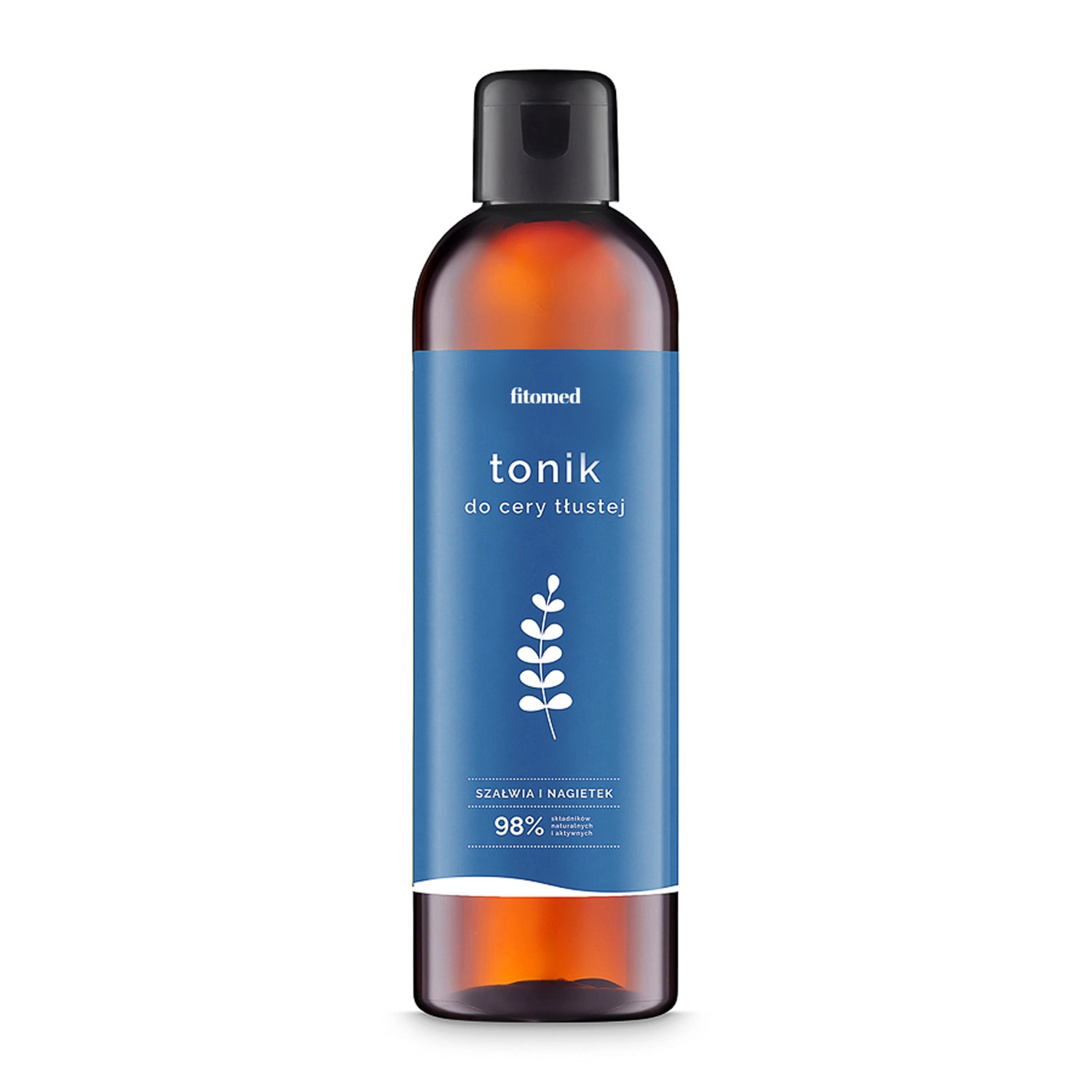 Fitomed - Тонік для жирної шкіри - трав'яний тонік для ранкового та вечірнього догляду за жирною та проблемною шкірою. Окрім відновлення фізіологічного рівня рН шкіри, він має додаткові заспокійливі та в'яжучі властивості. Містить екстракти солодки, календули та шавлії. Вони мають протизапальну, антибактеріальну, заспокійливу та себорегулюючу дію. Тонік зменшує надмірну секрецію себуму. Дует пантенолу та алантоїну мінімізує подразнення, зменшує втрату води з епідермісу та пом'якшує шкіру. Тонік має веганську формулу, яка на 98% складається з натуральних компонентів.