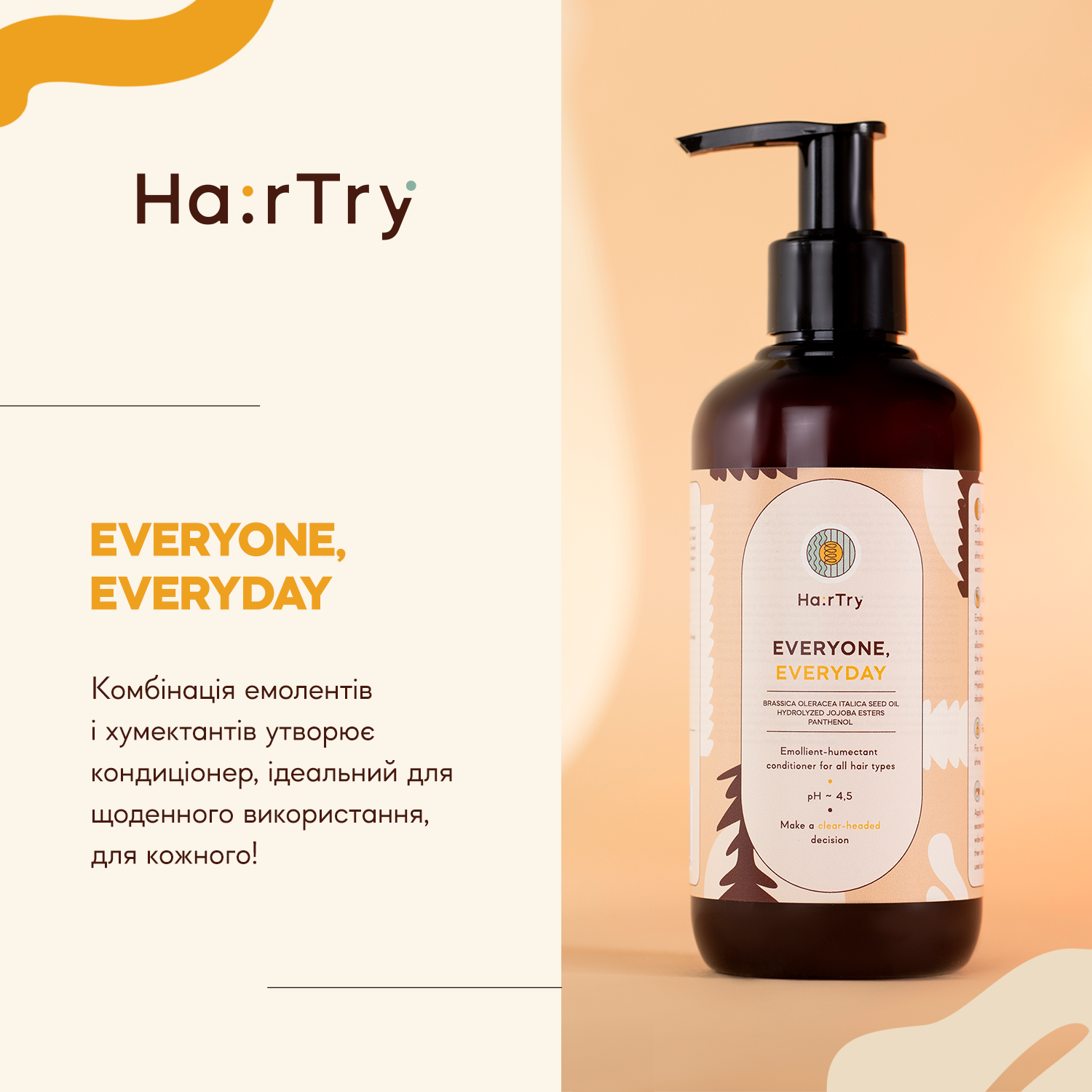 Кондиціонер HairTry - Everyone, Everyday не містить силіконів у складі. Його формула створена так, щоб забезпечити щоденний догляд та легкість, не обтяжуючи волосся.