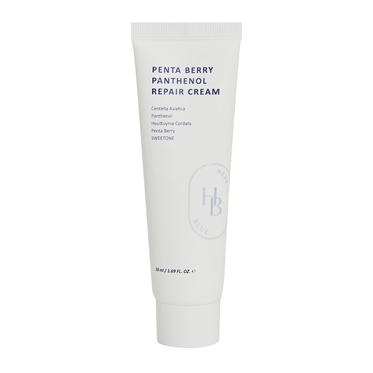 HEVEBLUE - Penta Berry Panthenol Repair Cream - крем для обличчя з інтенсивною регенерувальною, протизапальною та зволожувальною дією, рекомендований для сухої, подразненої або чутливої шкіри. Містить високу концентрацію активних компонентів, а саме: гідролат центелли азіатської 69% та пантенол 10%. Разом вони ефективно заспокоюють подразнення і зменшують почервоніння шкіри, одночасно відновлюючи комфорт і усуваючи неприємне відчуття стягнутості. Водночас гіалуронат натрію забезпечує необхідну дозу зволоження, екстракти ягід ревіталізують шкіру і зменшують запалення, а екстракт гуттуїнії прискорює загоєння.У результаті крем дбає про належний рівень зволоження, надає відновлювальний і заспокійливий ефекти. Продукт підходить для веганів та вегетаріанців.