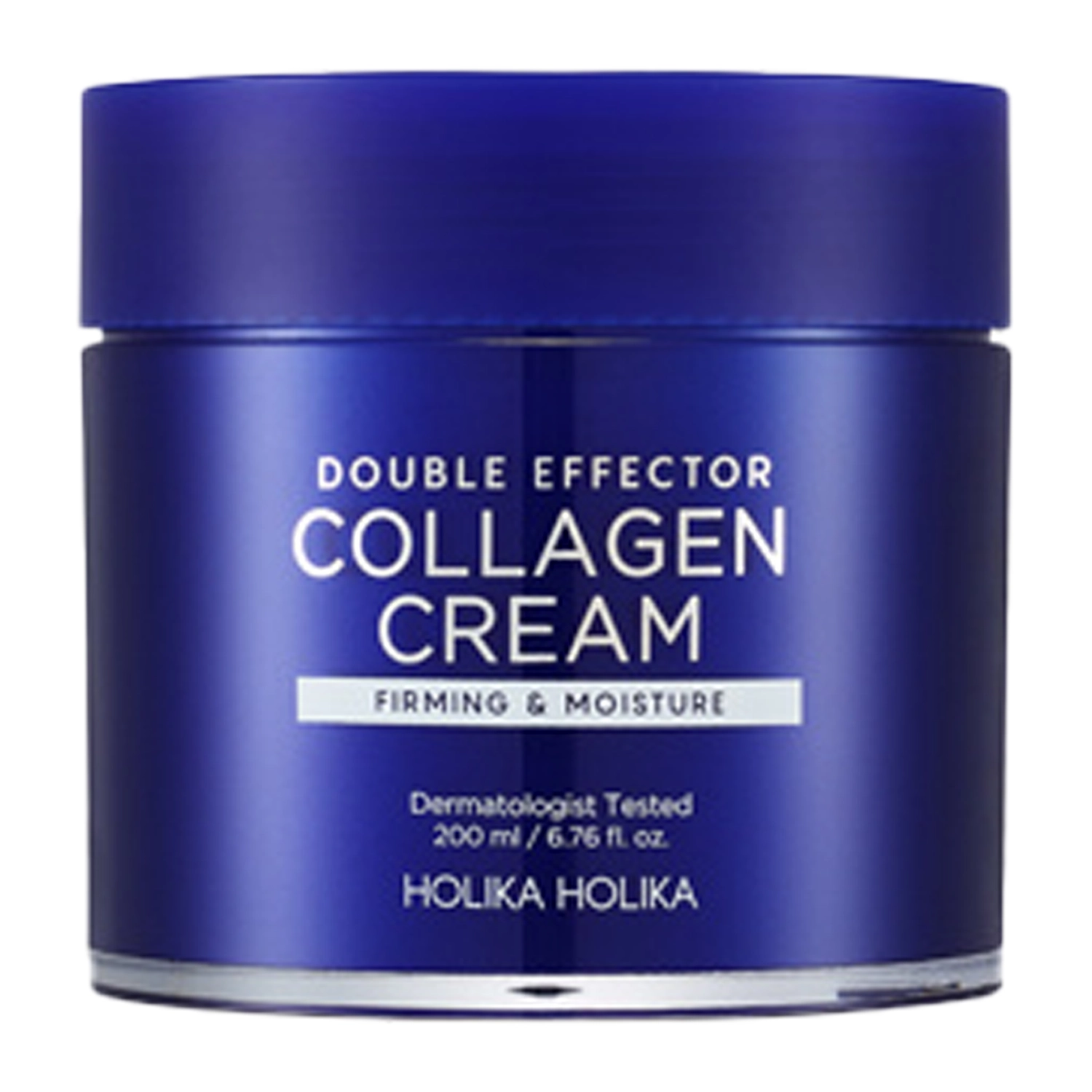 Holika Holika - Double Effector Collagen Cream – зволожувальний та зміцнювальний крем для обличчя. Його дія базується на поєднанні двох форм колагену, що покращує еластичність шкіри, з гіалуроновою кислотою, яка забезпечує тривале зволоження. Водночас ніацинамід та PDRN підвищують еластичність шкіри та антивікові властивості продукту. Підходить для всіх типів шкіри, особливо рекомендується для сухої шкіри з першими ознаками старіння та втрати еластичності. Засіб упаковано у баночку дуже великого об’єму – 200 ml.