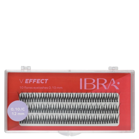 Ibra Makeup - Пучки вій V Effect 0,10 - 12 мм - пучки вій з лінійки V Effect, які подовжують вії та відкривають погляд. Вони розташовані у V-подібній формі, довжина вій поступово зменшується від зовнішніх боків до центру пучка. Завдяки своїй легкості вони не відчуваються на очах.
