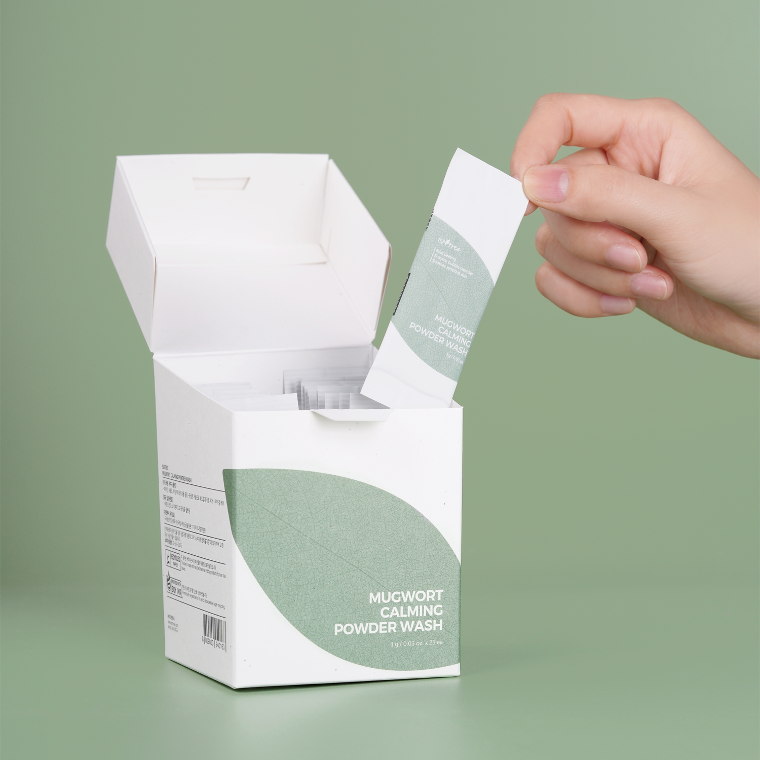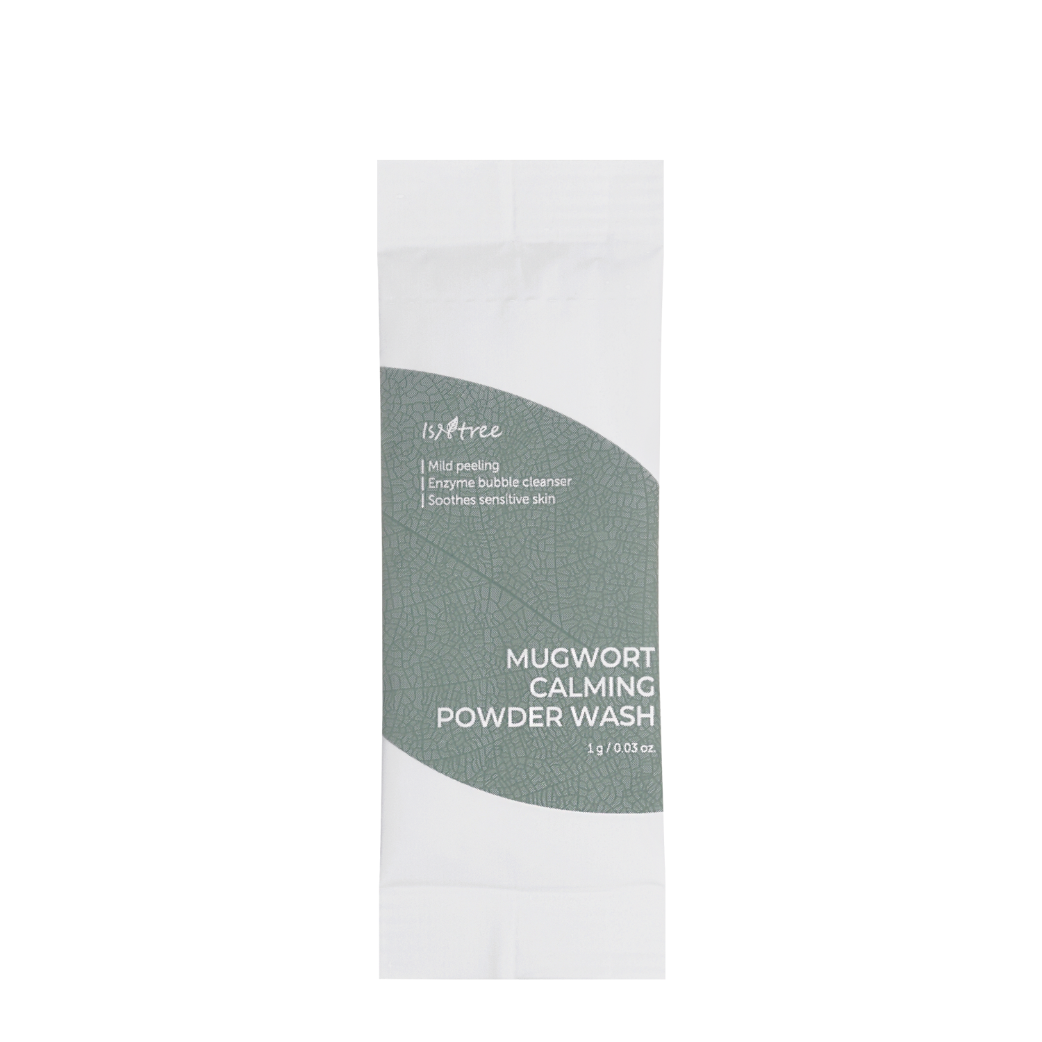 Isntree - Spot Saver - Mugwort Calming Powder Wash - набір з 25 саше з ензимною пудрою, що ідеально підходить як для подорожей, так і для щоденного використання. Пудра містить м'які поверхнево-активні речовини, які видаляють забруднення та залишки макіяжу з поверхні шкіри. Папаїн, або ензим з папаї, м'яко розгладжує та освіжає шкіру, допомагаючи зменшити кількість чорних цяток. Формула засобу додатково збагачена екстрактом полину з антиоксидантними та протизапальними властивостями. Пудра м'яко очищує, відлущує та пом'якшує шкіру. Усі компоненти продукту мають натуральне походження.