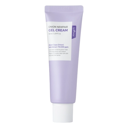 Isntree - Onion Newpair Gel Cream - крем з легкою гелевою текстурою, рекомендований для жирної шкіри з рубцями, пігментними плямами та акне. Містить екстракт цибулі - відомий у фармації своїми властивостями зменшувати шрами, він значно підтримує процес регенерації шкіри та бореться з недоліками. Формула додатково збагачена ніацинамідом, що регулює виділення себуму та освітлює шкіру, допомагаючи вирівняти тон і та зменшити жирний блиск. На додаток, транексамова кислота мінімізує появу пігментних плям, а гіалуронова кислота і пантенол інтенсивно зволожують, зменшують почервоніння і заспокоюють запалення. Крем добре підійде як для вечірнього догляду, так і під макіяж. Має приємну формулу, яка швидко поглинається, не викликаючи неприємного відчуття липкості на шкірі. Продукт випускається у зручній металевій тубі з ніжним фіолетовим відтінком.