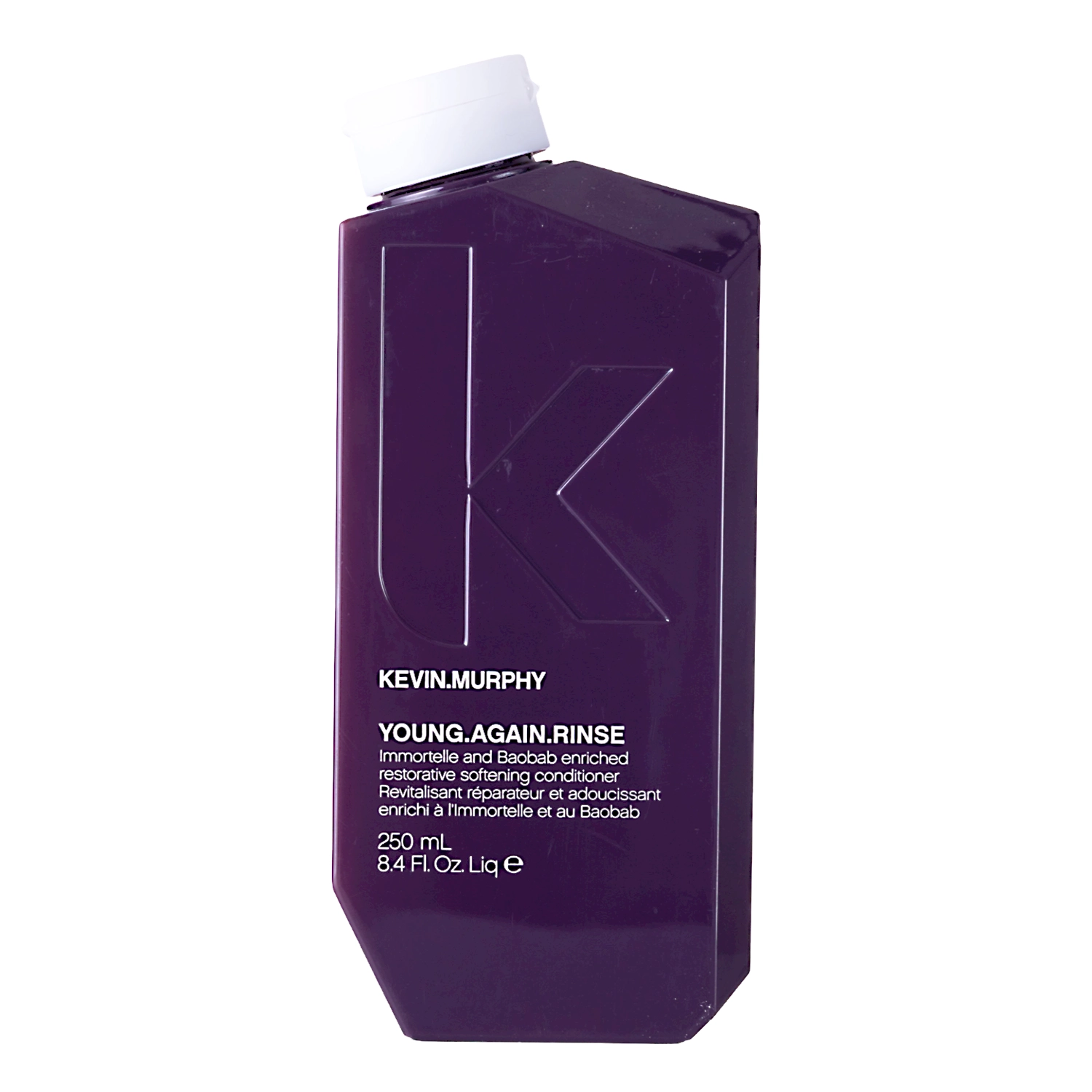 Kevin Murphy - Young Again Rinse – кондиціонер, що повертає сяйво сухому, пошкодженому та ослабленому волоссю. Містить біотин, який робить волосся густішим, еластичнішим та блискучим, а також стимулює їх ріст. Сік алое разом з пантенолом зволожують волосся та заспокоюють шкіру голови. Пантенол зменшує схильність до посічених кінчиків і зміцнює волосся. Водночас піридоксину гідрохлорид запобігає електризації та розгладжує волосся. Олія баобаба створює на поверхні волосся захисний шар, що запобігає випаровуванню вологи та регенерує.