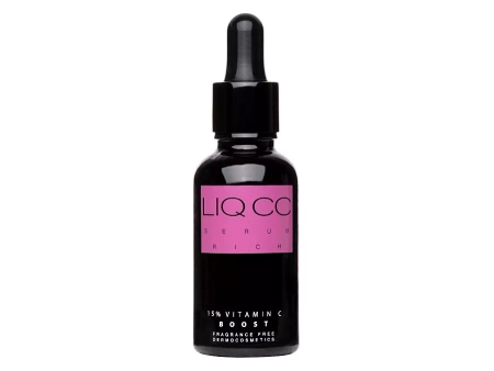Liqpharm - LIQ CC Serum Rich 15% Vitamin C BOOST - живильна сироватка з 15% вітаміном С, яка бореться з вільними радикалами, має протизапальні властивості і зменшує пігментні плями. Активність чистої неіонизованної форми вітаміну С посилюється завдяки присутності вітаміну Е і магнію, які в той же час надають захисну, регенеруючу і живильну дію. Формула сироватки збагачена гіалуронат натрієм, тобто низкомолекулярною гіалуроновою кислотою, яка зволожує і розгладжує шкіру. Продукт не містить ароматизаторів і штучних барвників.