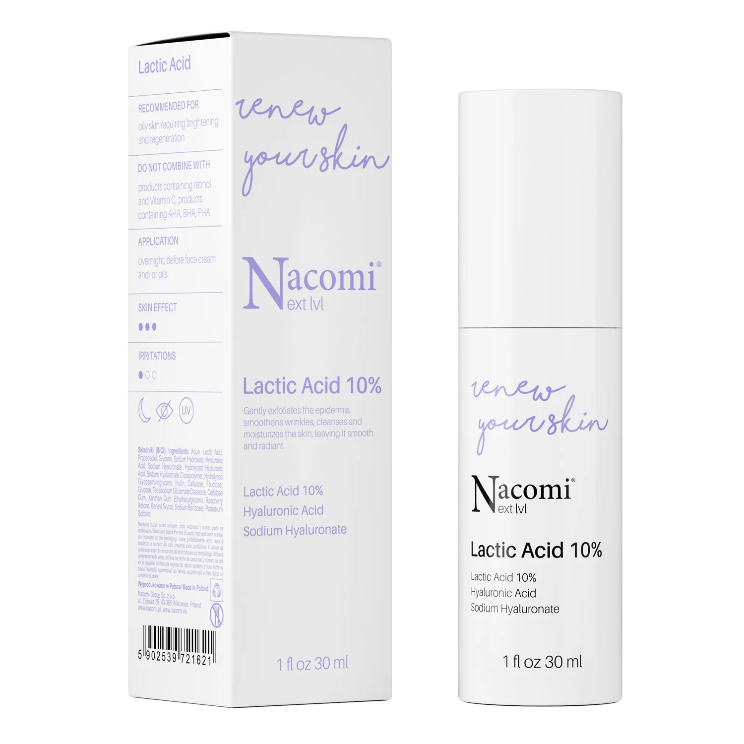 - молочна кислота 10% - відлущує, зволожує, пом'якшує, розгладжує, освітлює шкіру,