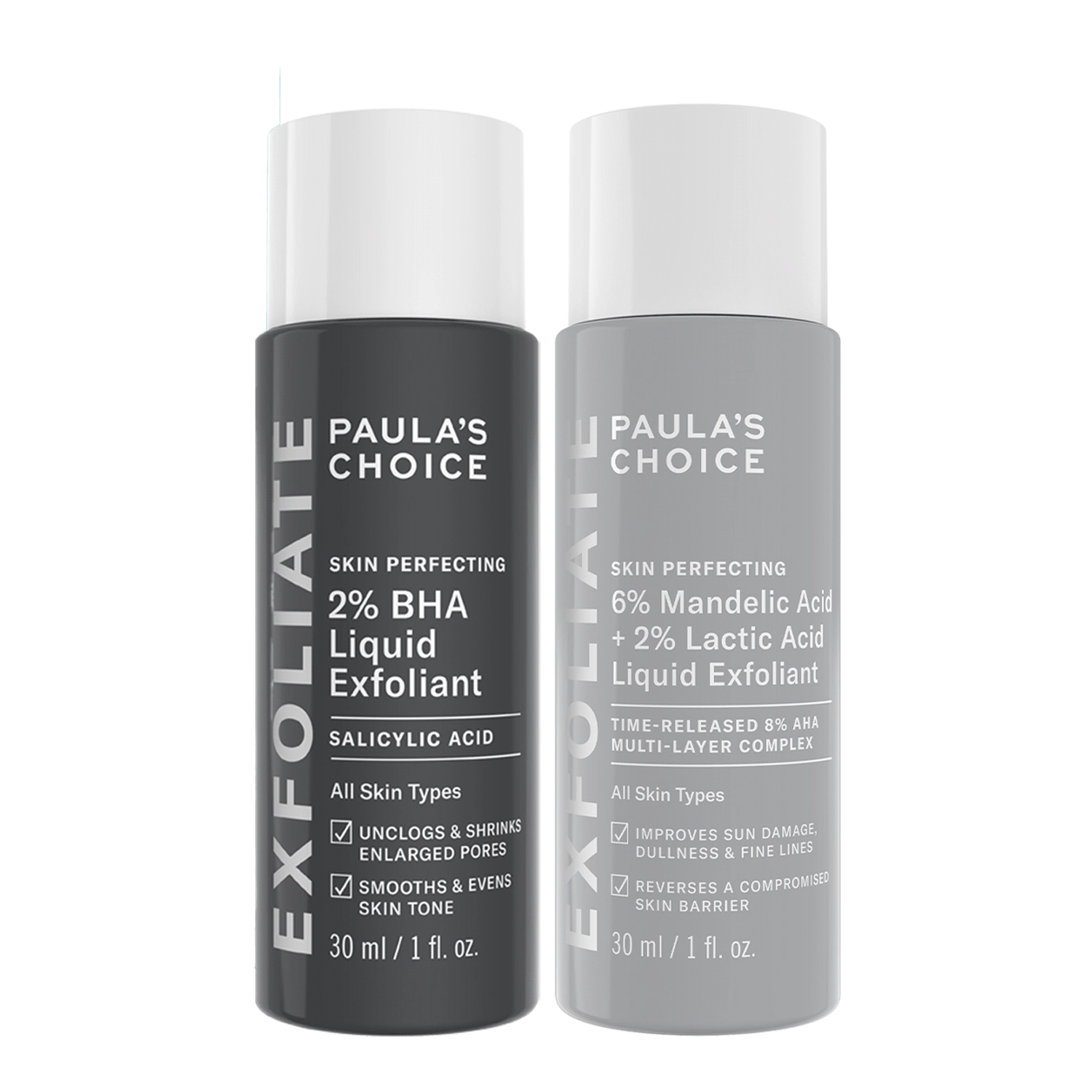 - Skin Perfecting - 2% BHA Liquid Exfoliant - кислотний пілінг, що містить 2% саліцилової кислоти, яка очищує закупорені сальні залози, зменшуючи їх помітність. Також до складу засобу входить екстракт листя зеленого чаю, який має в'яжучу, протизапальну та тонізуючу дію на шкіру. Об'єм - 30ml.