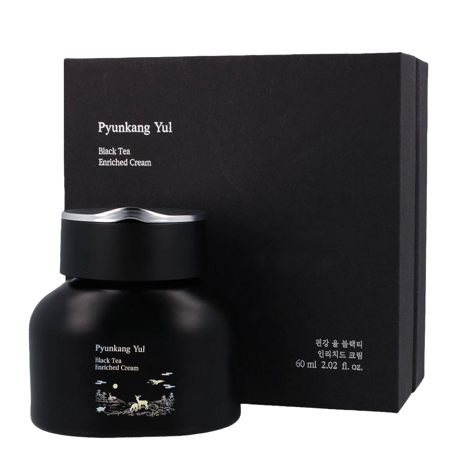 Pyunkang Yul - Black Tea Enriched Cream - крем із широким спектром дії, який, завдяки багатству компонентів, відповідає різноманітним потребам шкіри. До складу входить ніацинамід, який зміцнює захисний бар'єр шкіри, має себорегулюючу, протизапальну та освітлювальну дію. Формула продукту збагачена екстрактом центелли азіатської та компонентами, отриманими з цієї рослини, які мають заспокійливу, регенеруючу та антибактеріальну дію. Пептид у формі аргіреліну бореться зі зморшками і запобігає поглибленню мімічних зморшок. Цераміди зміцнюють ліпідний бар'єр, захищають шкіру від сухості та живлять її. Бета-глюкан підвищує еластичність шкіри.