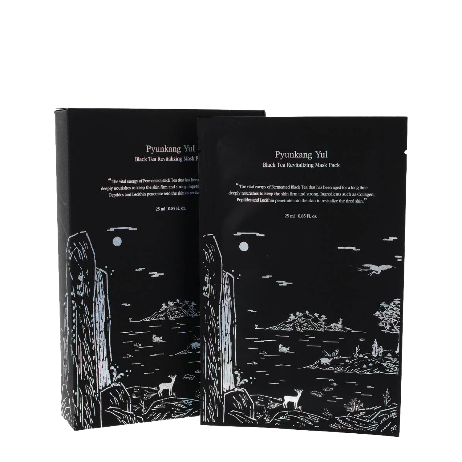 Pyunkang Yul - Black Tea Revitalizing Mask Pack - відновлювальна тканинна маска для догляду за шкірою обличчя. Вона містить ніацинамід, який заспокоює подразнення, регулює роботу сальних залоз та вирівнює тон шкіри. Антиоксидантний екстракт чайного листа разом з екстрактом синіх ягід створюють захисний бар'єр від вільних радикалів та уповільнюють процеси старіння шкіри. Пептиди в поєднанні з колагеном і 5 молекулярними формами похідних гіалуронової кислоти підвищують пружність та підтягують шкіру, а також дбають про її зволоження. Формула також збагачена скваланом та церамідом NP, які заспокоюють та зміцнюють шкіру. Маска інтенсивно живить шкіру та зміцнює її гідроліпідний бар'єр.