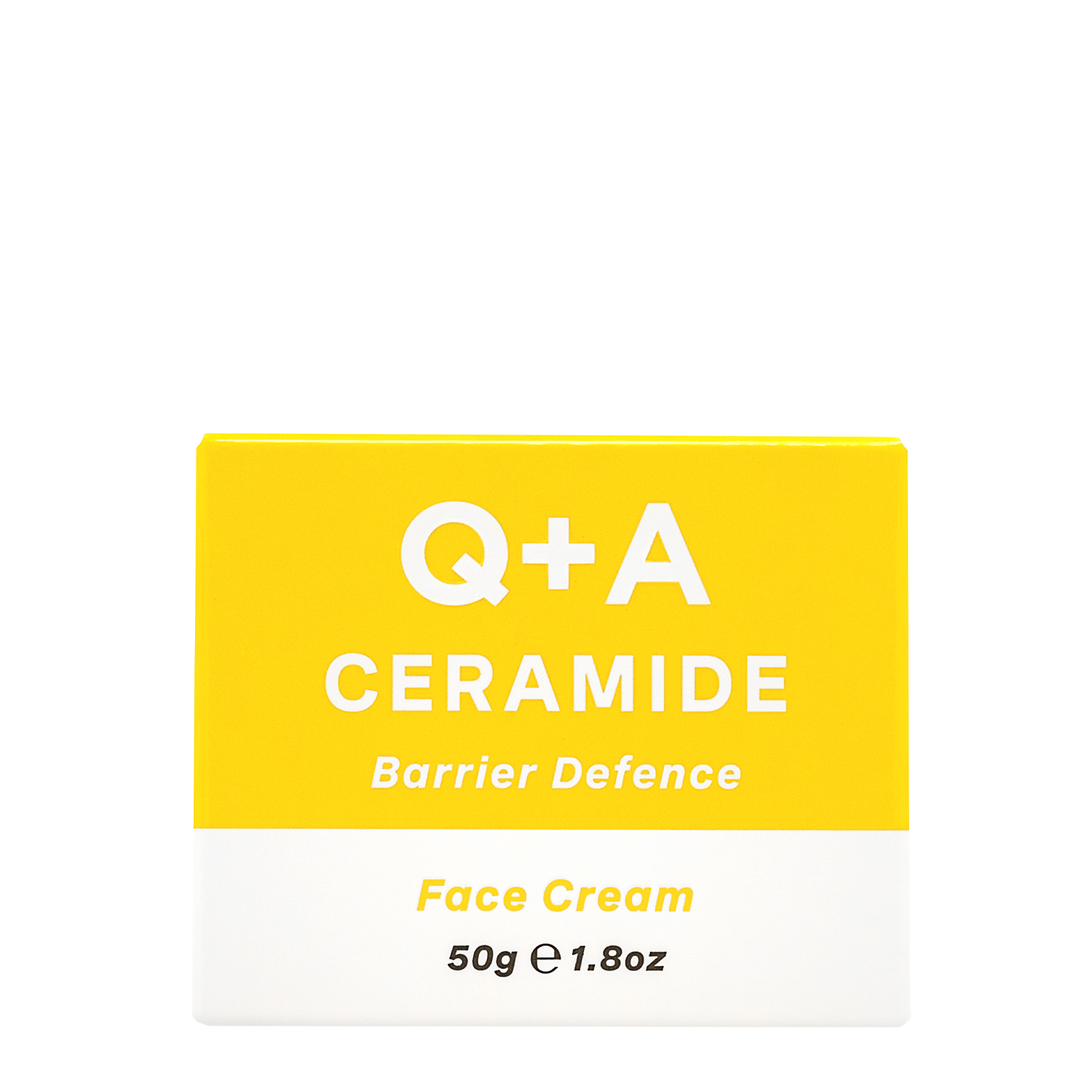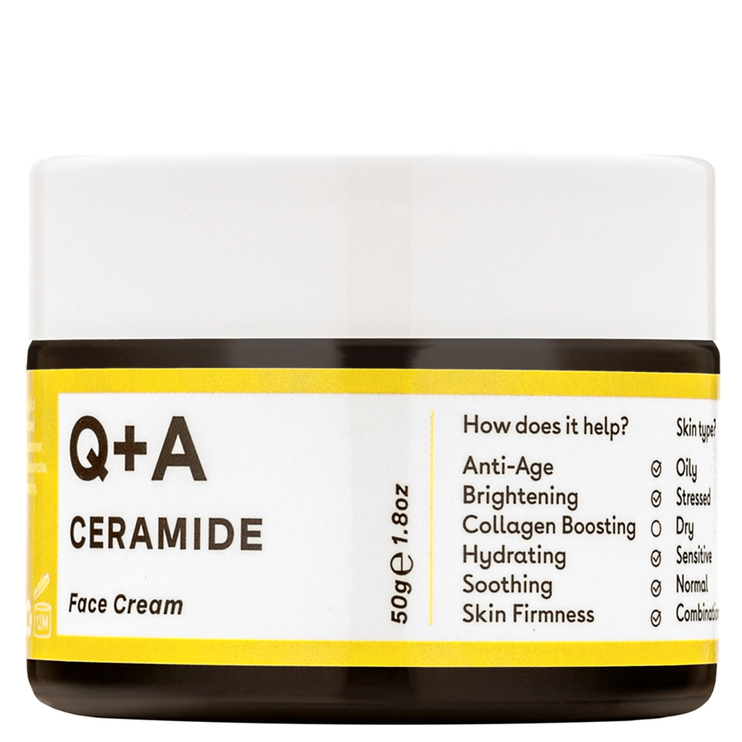 Q+A - Захисний крем для обличчя з церамідами - стійкий зволожувальний і заспокійливий крем для обличчя, що підходить для всіх типів шкіри. Завдяки вмісту цінних церамідів він є особливо ефективним у відновленні порушеного ліпідного бар'єра. Унікальна формула також містить сквалан і олію жожоба, які утримують воду в епідермісі, покращуючи рівень зволоження. Крем на 97,9% складається з компонентів натурального походження, є веганським і не містить потенційно подразнюючих ароматизаторів, тому він підходить навіть для чутливої шкіри.