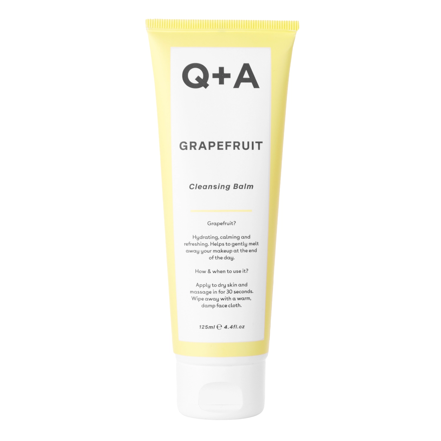 Q+A - Grapefruit - Cleansing Balm - м'який очищуючий бальзам для обличчя. Його склад багатий на антиоксиданти, отримані з олії грейпфрута. Олії какао та солодкого мигдалю, які також входять до складу, живлять шкіру і зволожують, сквалан захищає від зовнішніх факторів, а рицинова олія має протизапальні властивості.