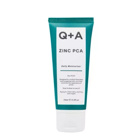 Q+A - Zinc PCA - Daily Moisturiser - крем для жирної, проблемної та схильної до акне шкіри. Цинк PCA, який входить до складу, сприяє загоєнню запалень, має антибактеріальні властивості і зменшує подразнення. До складу також входить ніацинамід, який освітлює, підтримує захисний бар'єр шкіри та регулює секрецію шкірного сала. Екстракт кореня сибірського женьшеню є антиоксидантом, регенерує та покращує кровообіг у шкірі, а екстракт алое заспокоює та зволожує. Олія виноградних кісточок має антибактеріальні та протиугреві властивості. Крем забезпечує шкірі відповідний рівень зволоження, допомагаючи боротися із недосконалостями.