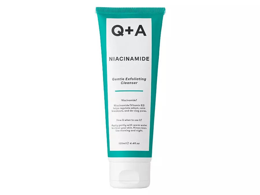 Q+A - Niacinamide - Gentle Exfoliating Cleanser - очищуючий гель, розроблений спеціально для комбінованої, жирної і проблемної шкіри. Містить ефіри жожоба, які відлущують та розгладжують епідерміс. Екстракт алое прискорює процес загоєння та заспокоює шкіру. До складу входить ніацинамід, який зміцнює захисний бар'єр шкіри, регулює секрецію шкірного сала та має протизапальні властивості. Комбінація інуліну та фруктози зміцнює мікробіом шкіри, зменшує запалення та запобігає втраті води з епідермісу. Засіб очищує шкіру, захищає від подразнення та знімає запалення.