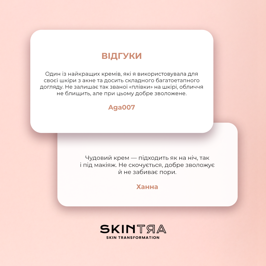 Спосіб використання: Нанести невелику кількість крему на шкіру після ретельного очищення й тонізації. Розподілити по всьому обличчю і зачекайте до повного поглинання. Наносити 1-2 рази на день залежно від потреб.